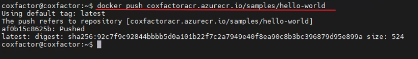 docker push coxfactoracr.azurecr.io/samples/hello-world