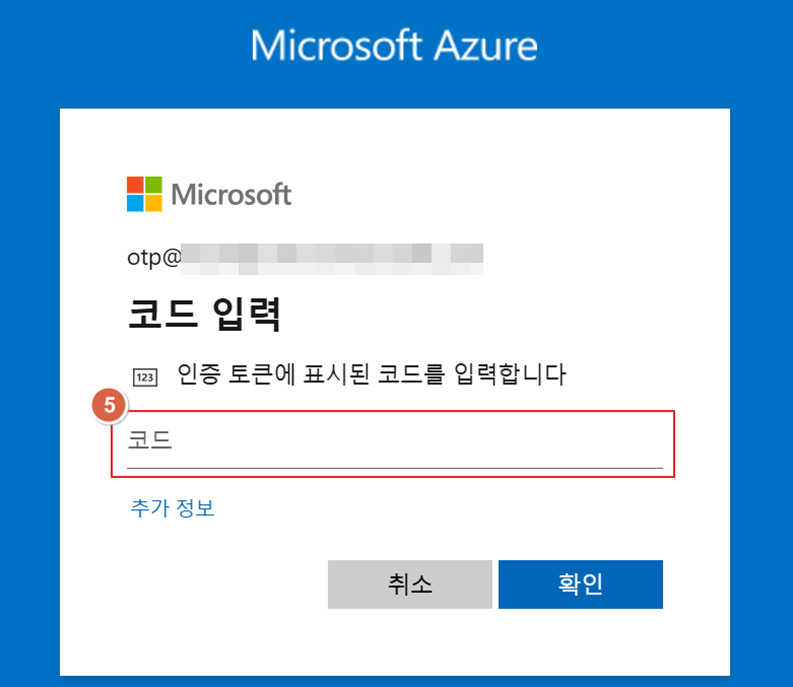 1) Azure Login 진행 시 MFA 인증 코드 입력이 나타나고 Token2 OTP에 나타나는 6자리 코드를 입력 후 로그인 합니다.