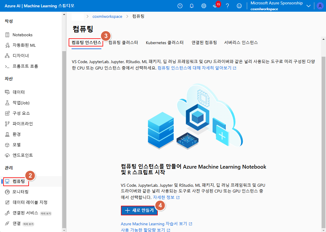 기존 Azure 리소스를 Azure ML 환경에 연결하여 사용할 수 있습니다.