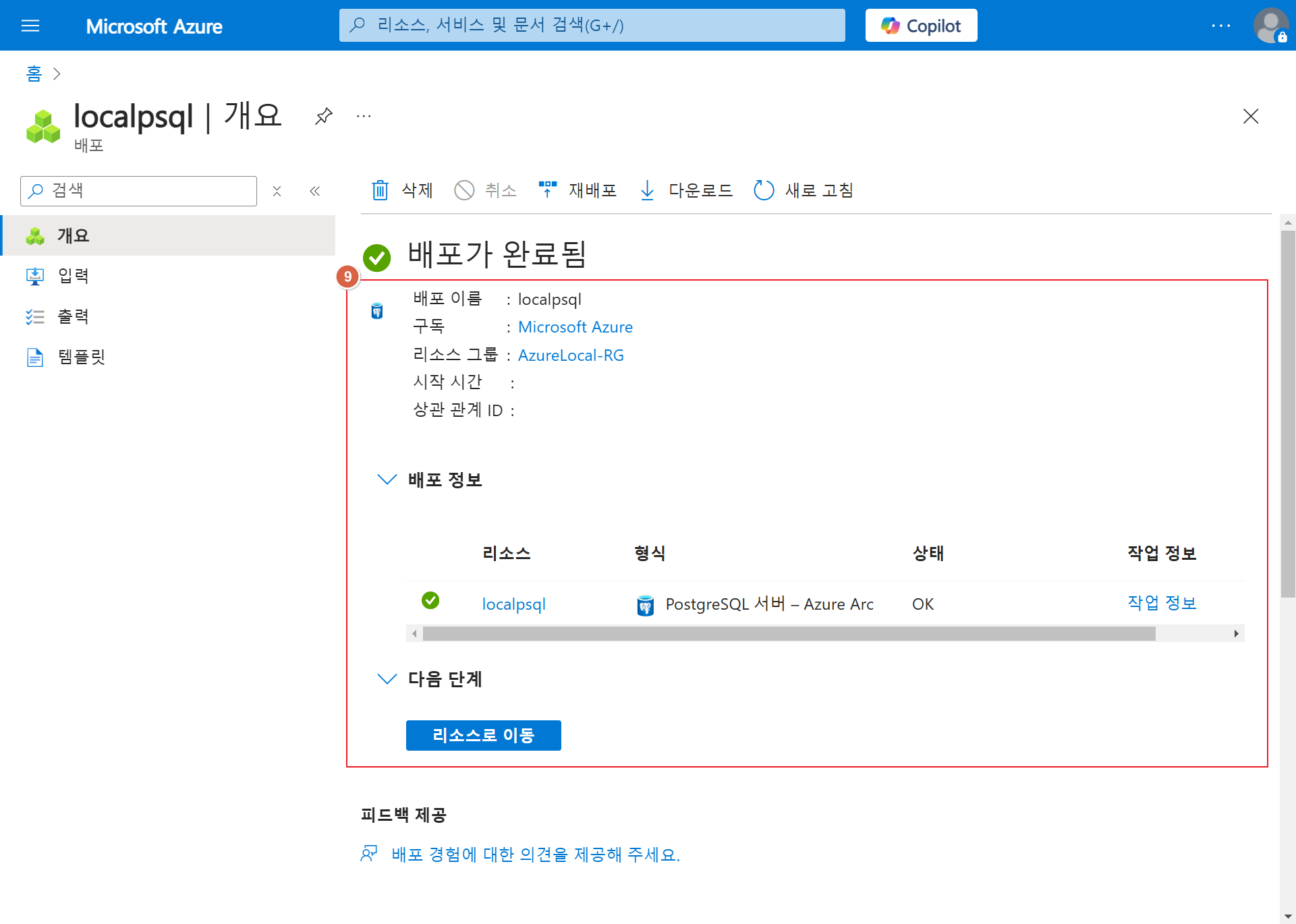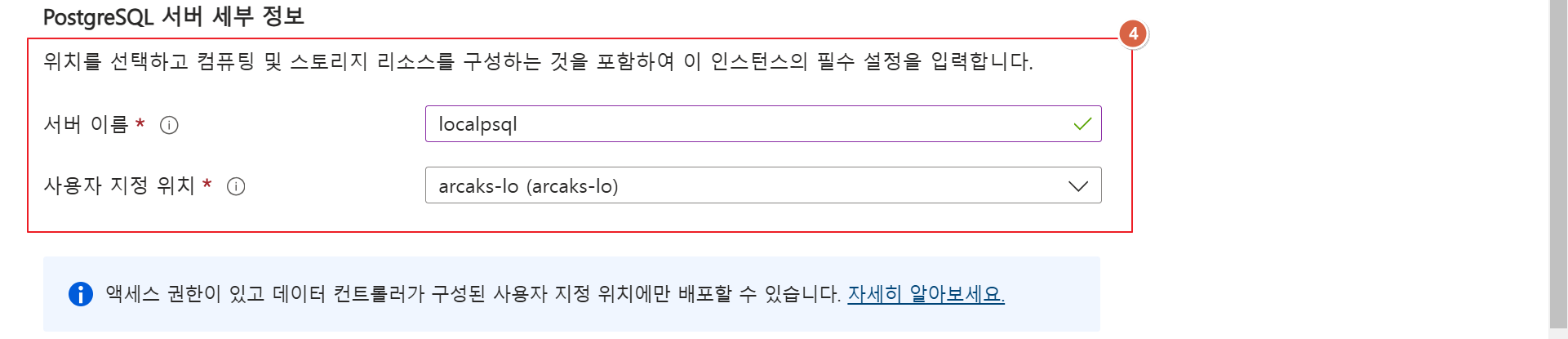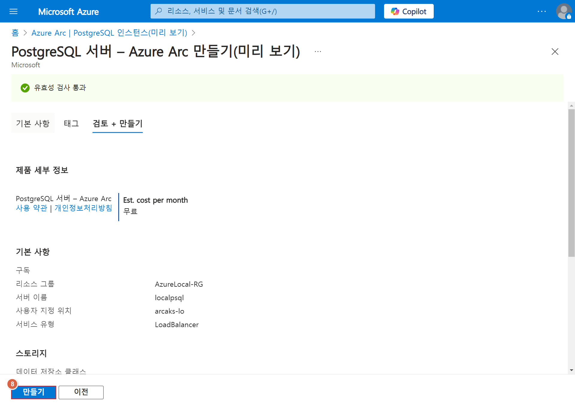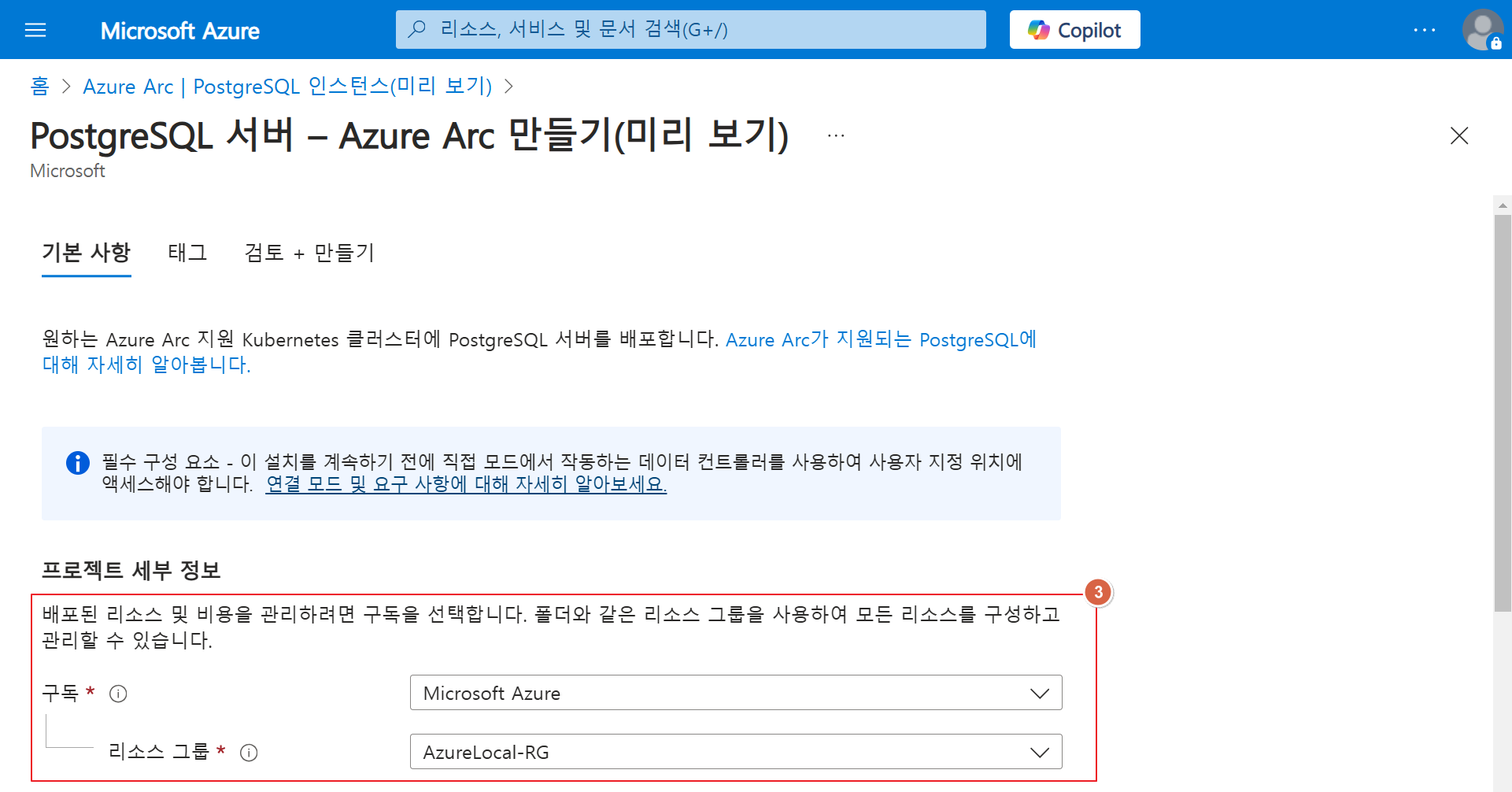 1. Azure Portal > Azure Arc > 데이터 서비스 > PostgreSQL Instance > "+ 만들기"