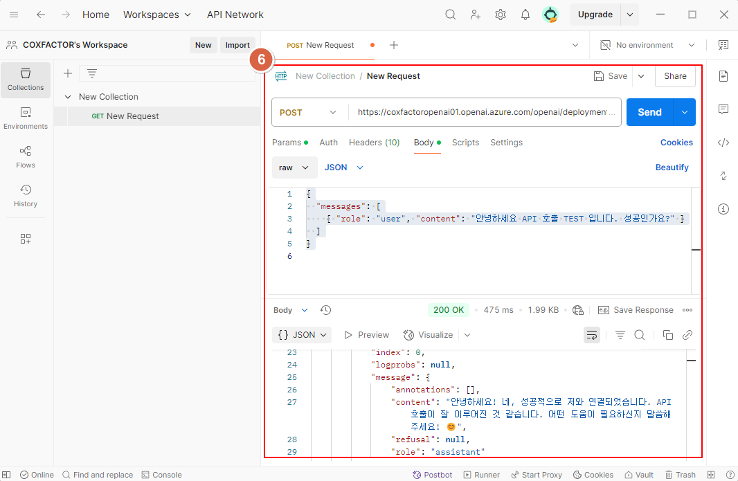 Azure OpenAI 에 Postman을 통해 POST 요청하여 응답 받기