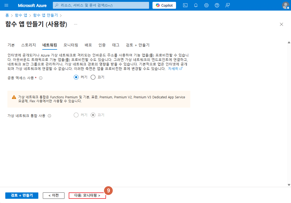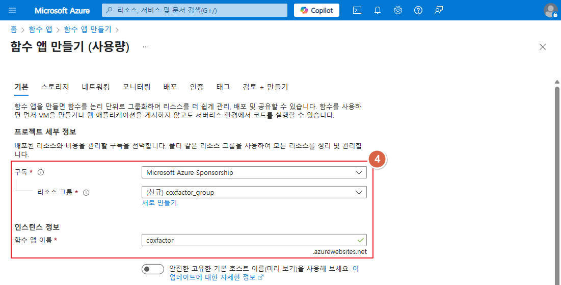 1. Azure Portal > "함수 앱(Function App)" 검색 > + 만들기