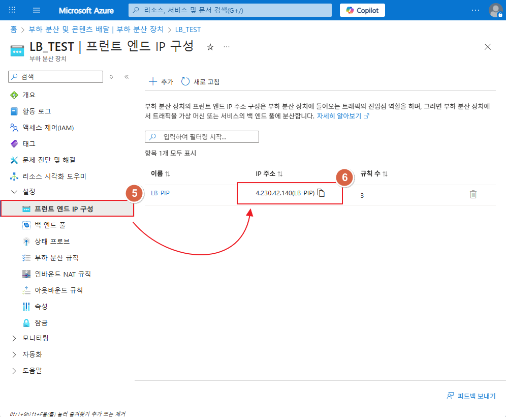 5. Azure LB Public IP 확인 및 VM에서 Outbound IP 확인