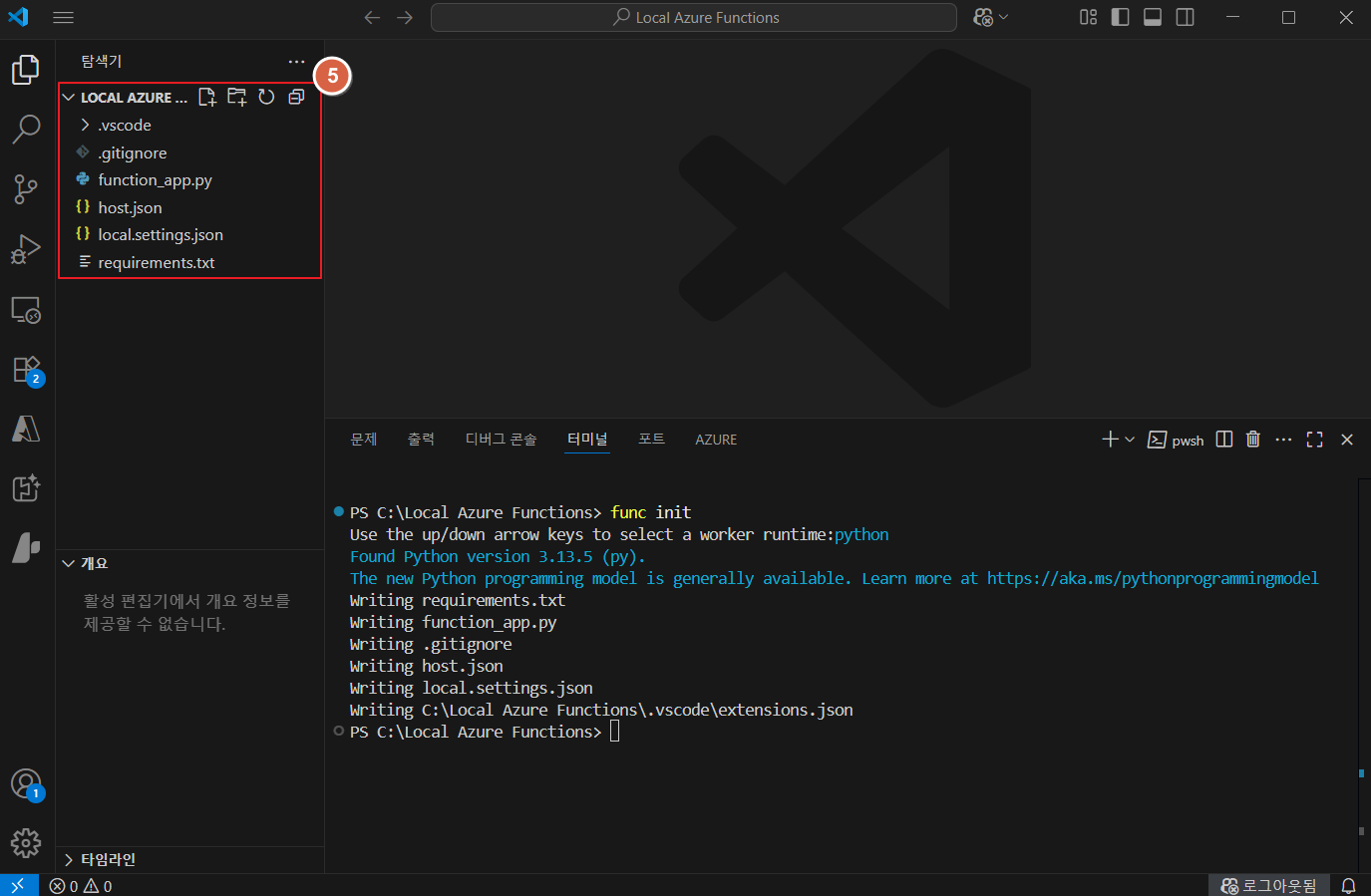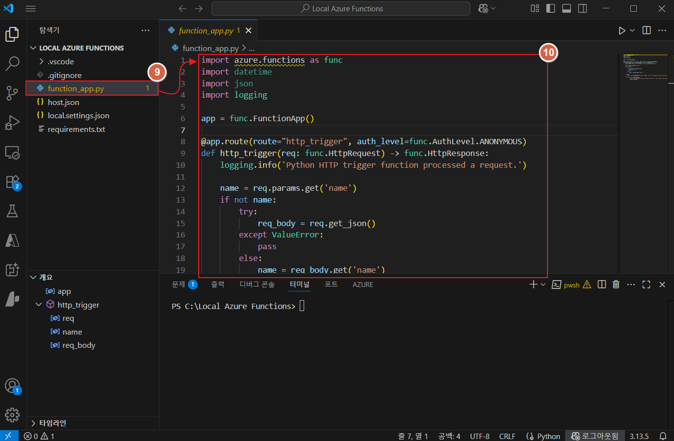 5. 선택한 정보는 function_app.py에 자동으로 코드가 추가됩니다.