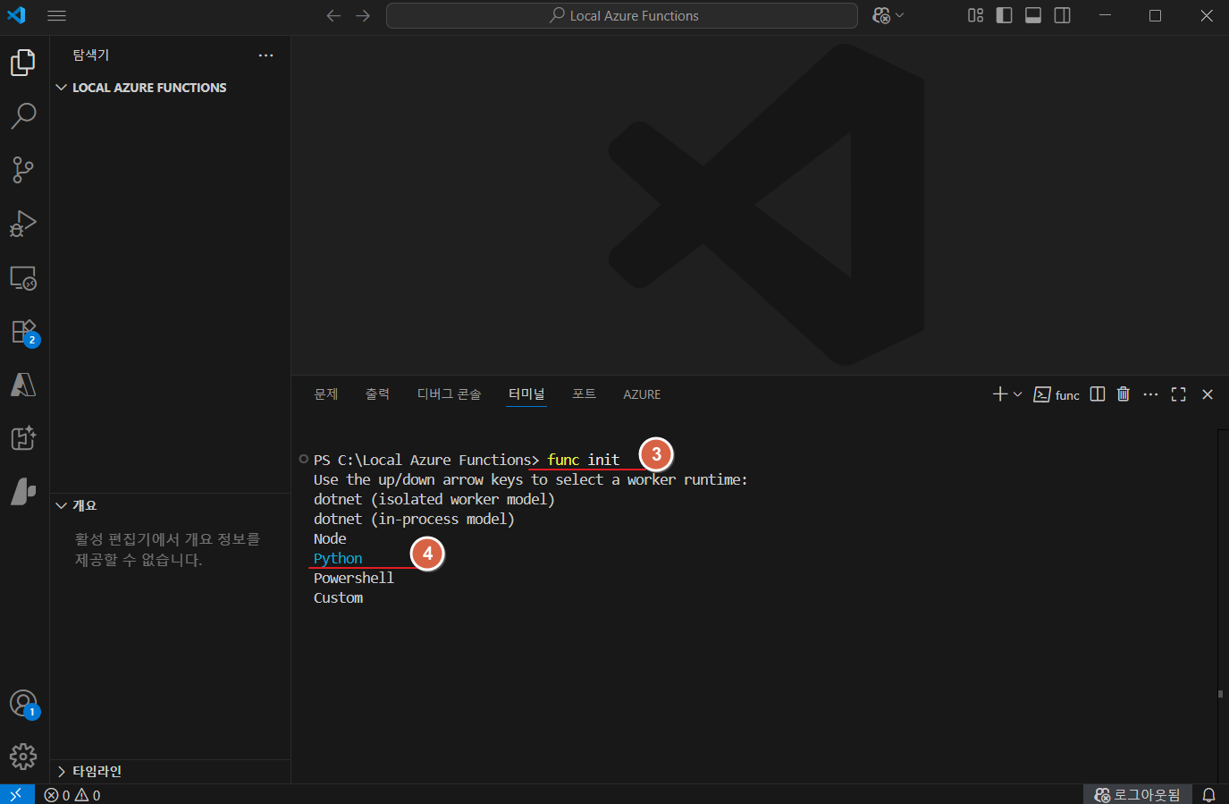 새 Azure Functions 프로젝트를 만들고 함수 추가, 삭제 가능