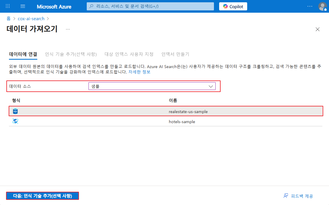 1. Azure Portal > Azure AI Search > "데이터 가져오기"