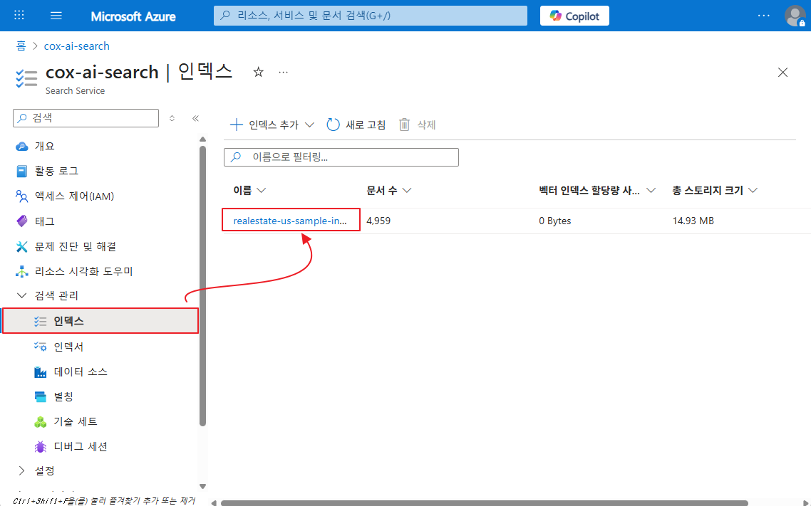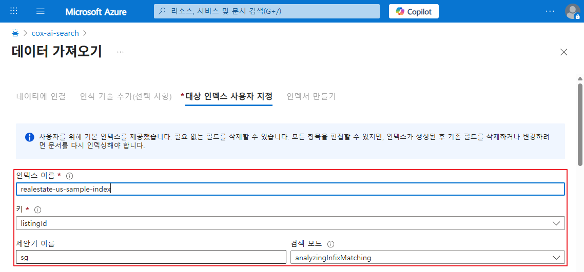 4.1 데이터가 검색될 인덱스(Index) 를 정의합니다.