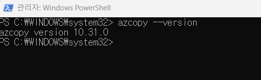 6. Powershell 새로 열기 > 확인 "azcopy --version"