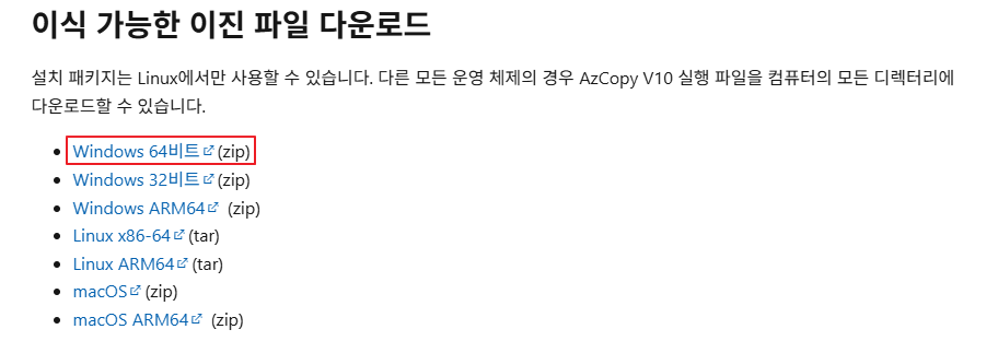 Windows OS에서 AzCopy 설치 및 설정 절차