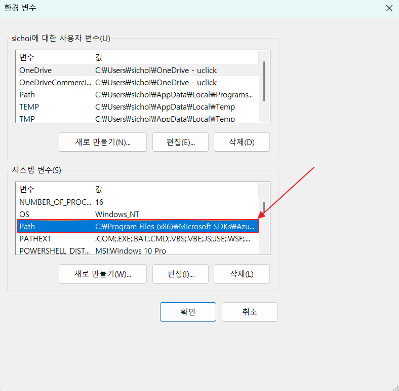 5. 새로 만들기(N) > C:\azcopy 입력 > 확인