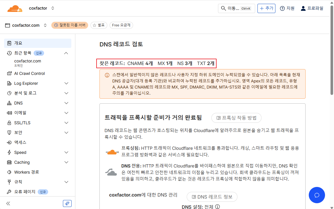 *필요한 기존 DNS 레코드가 누락되지 않았는지 확인!