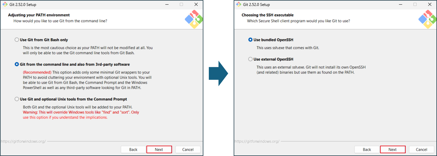 5. PATH는 커맨드 라인, 3rd Party 선택 및 번들 Open SSH 선택 후 "Next"