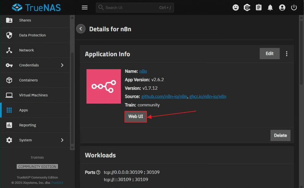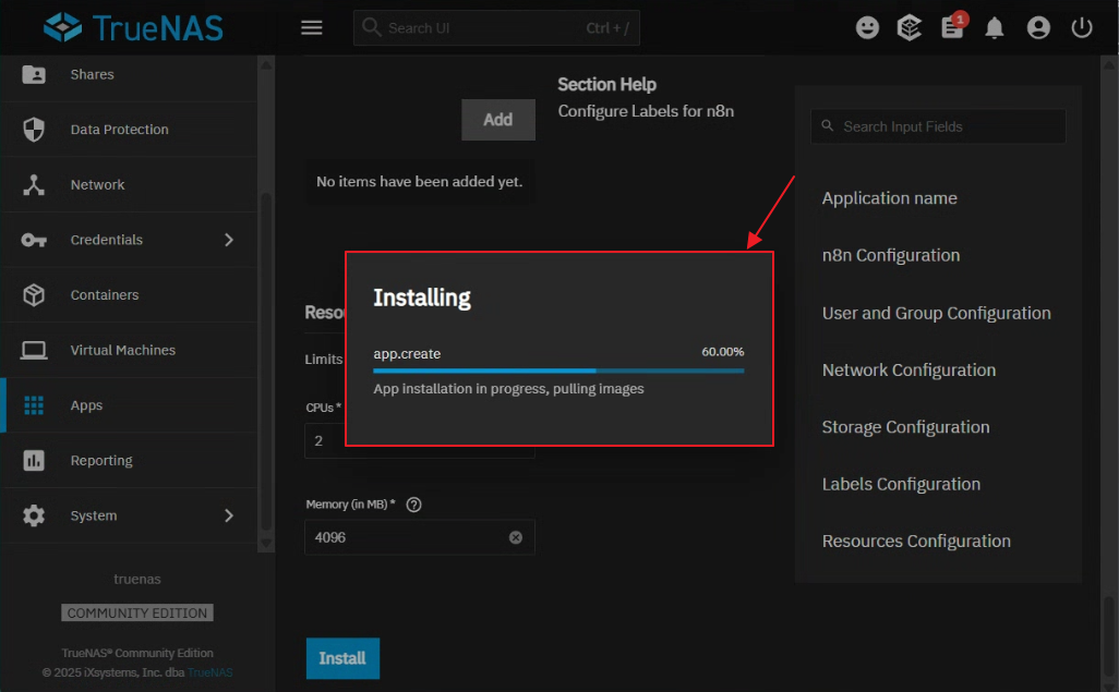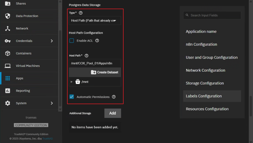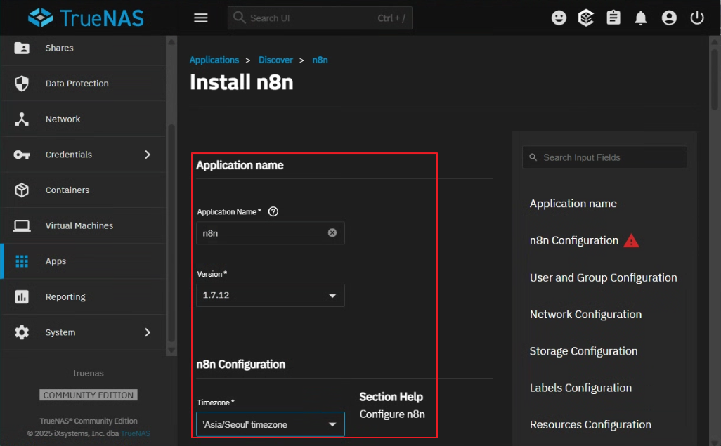 TrueNAS SCALE에서는 별도의 Docker Compose 없이도 Apps → Launch Docker Image 기능을 통해 간단하게 n8n을 배포할 수 있습니다.