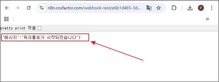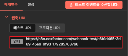 요청하신 화면처럼 Webhook URL이 외부 도메인으로 나오면 성공입니다.