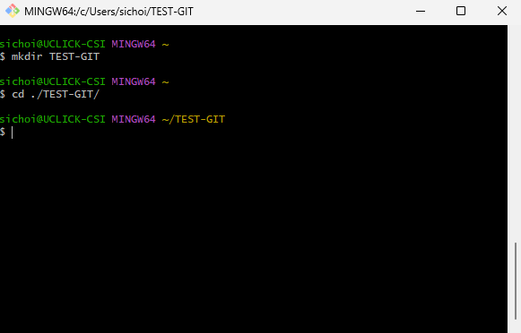1. Git Bach 실행 > 작업 폴더 생성 > 작업 폴더 이동
