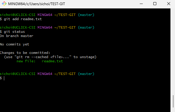 Windows OS에서 지난번indows OS에서 지난번 설치한 "Git"을 통해 저장소 생성 → 파일 생성 → add → Commit 을
