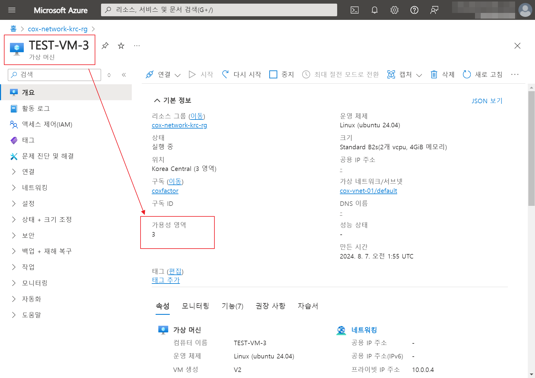 "가용성 영역 2", "가용성 영역 3"에 자동으로 적용되어지지 않습니다. 각 독립적인 VM이 생성되어진 겁니다.