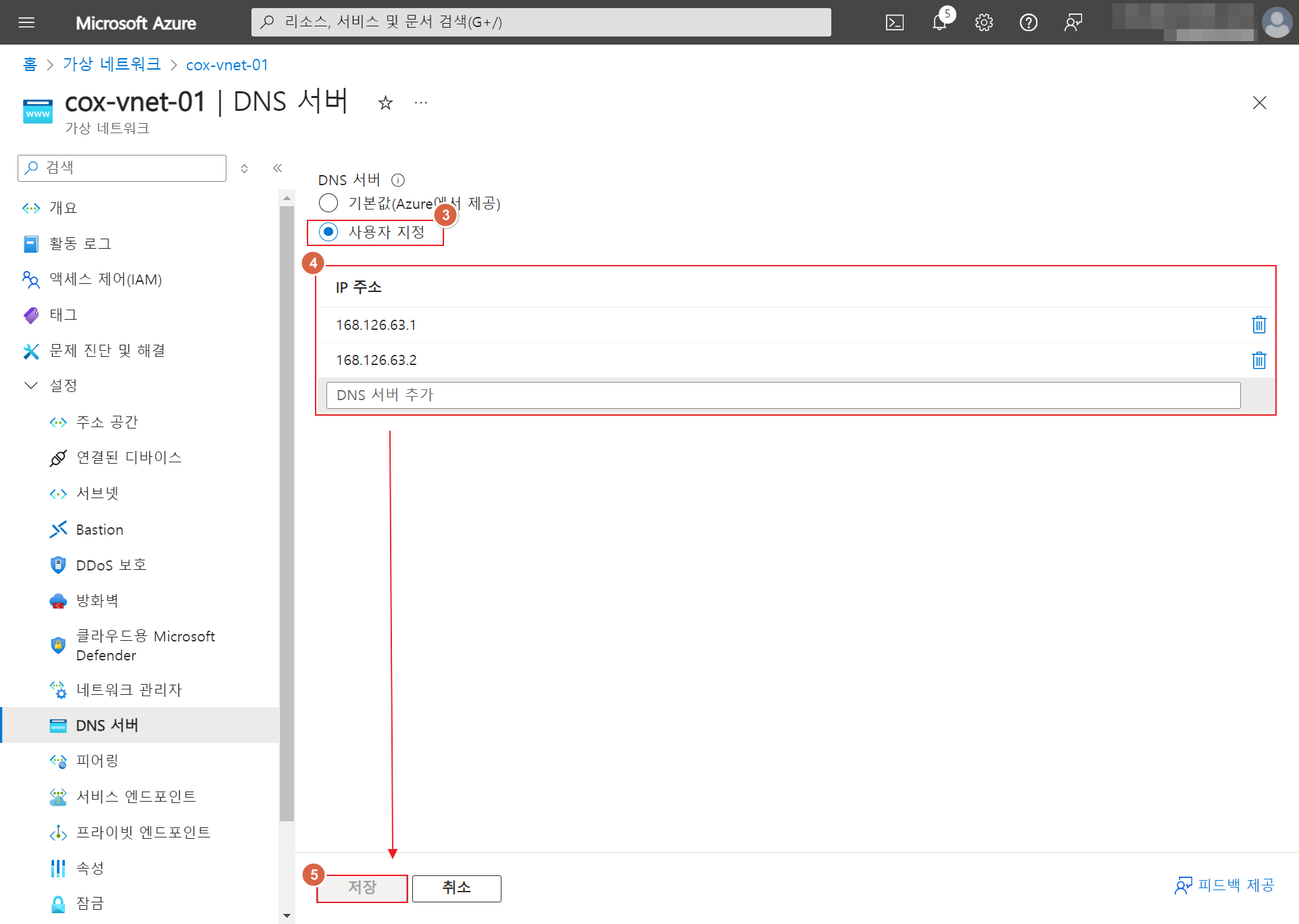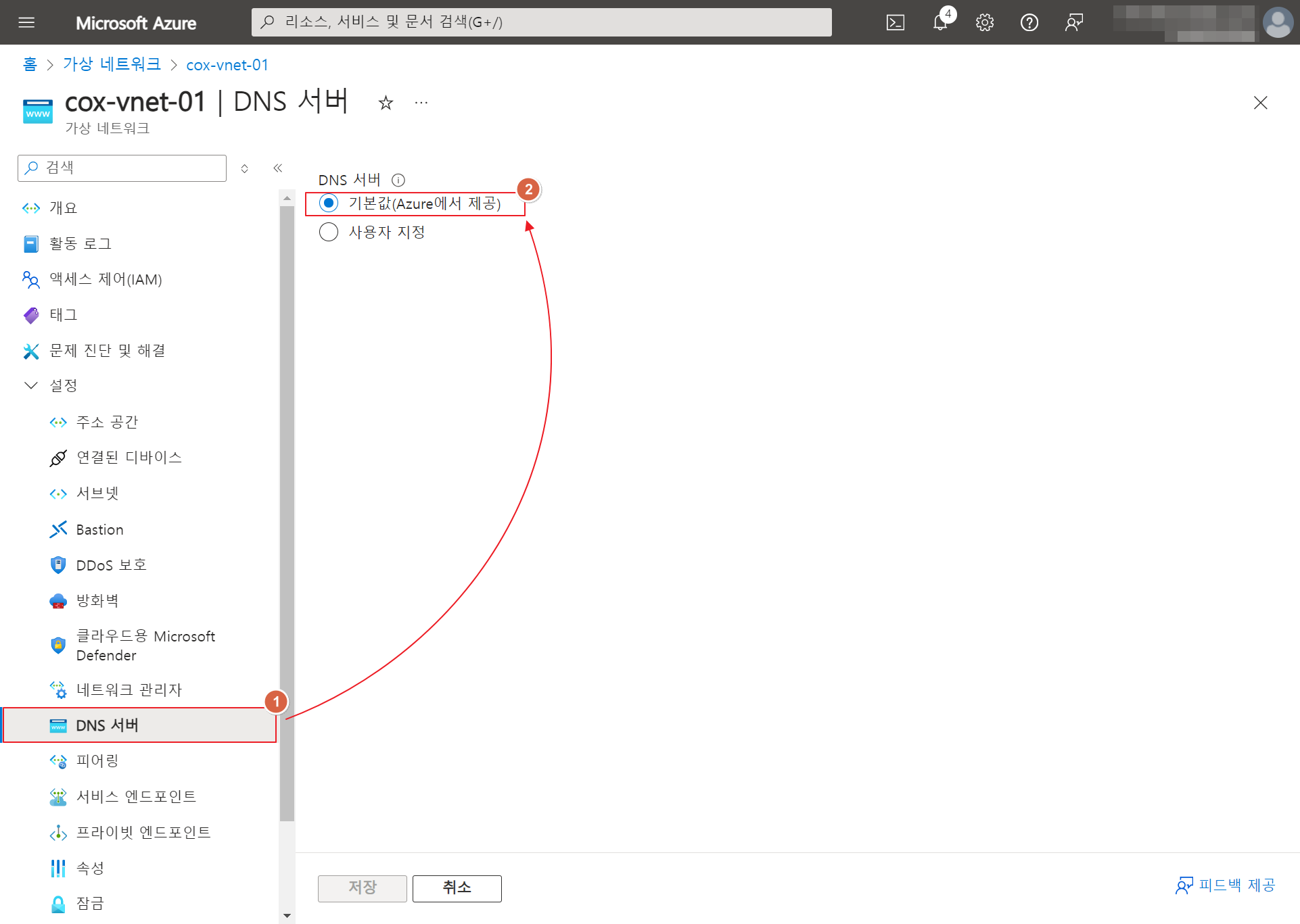 [VNET DNS 변경하기]