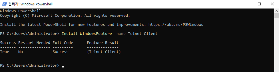 # Windows 10/11에서 Telnet Client 설치 명령어