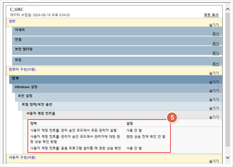 "UAC(User Account Control)"는 Windows 시스템에서 특정 작업을 수행할 때 필요한 권한 수준을 제어하며, GPO를 통해 설정할 수 있습니다."