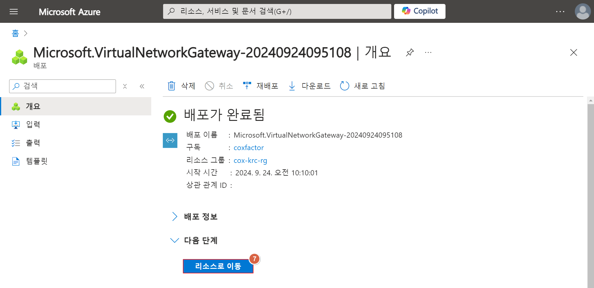 Azure VPN Gateway 배포 완료 되었으니 "연결" 구성을 진행 ~