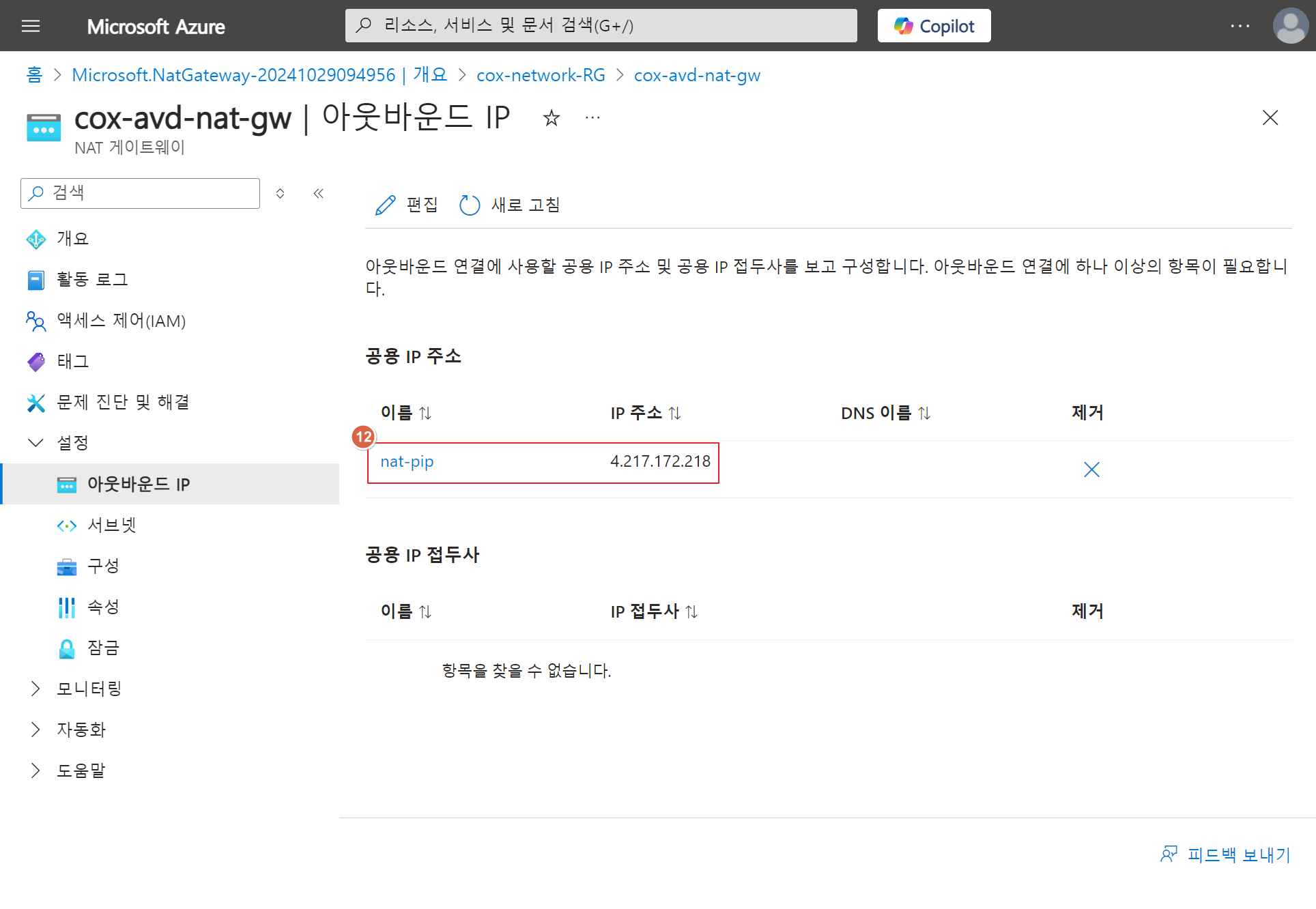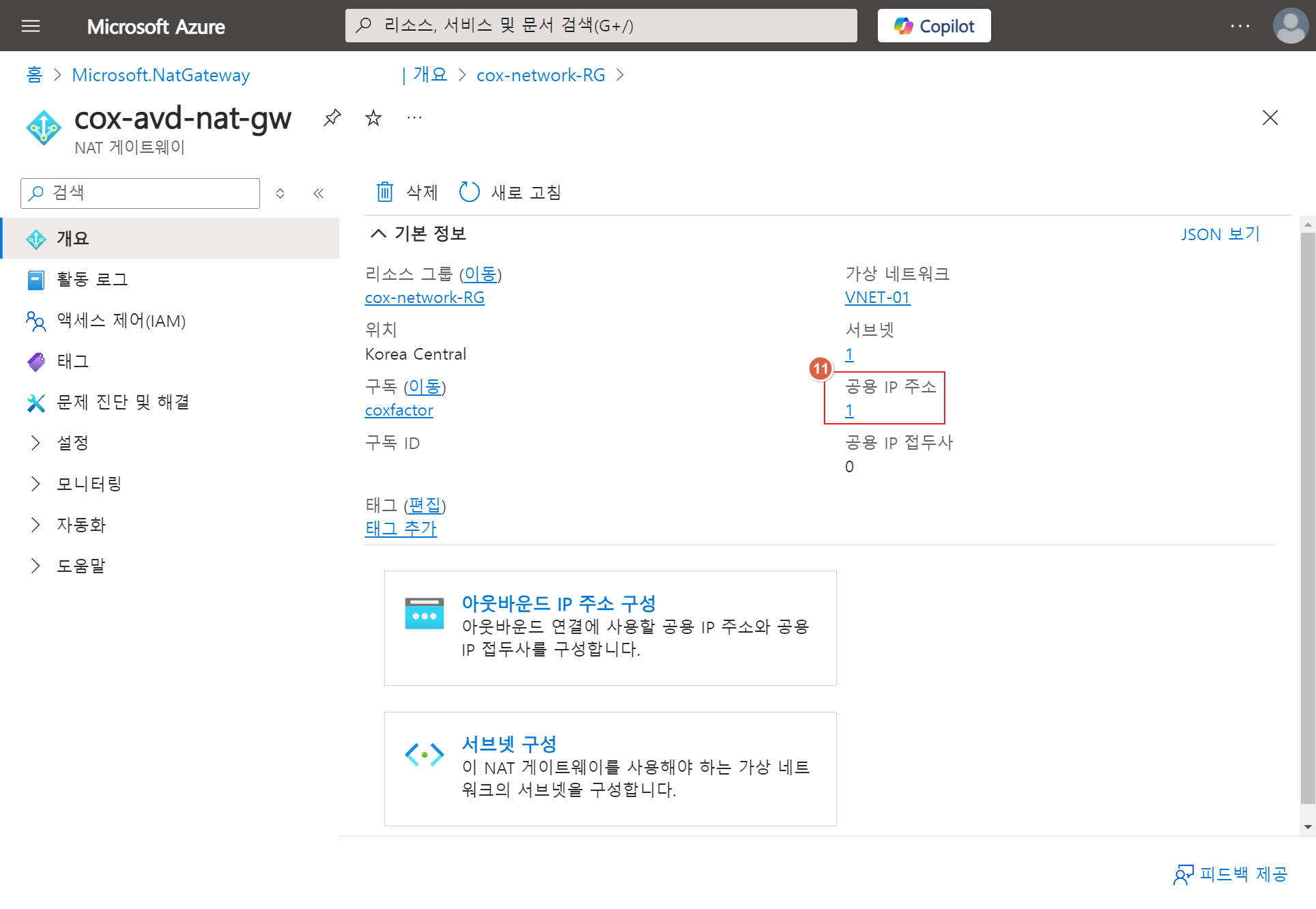 2. NAT Gateway Public IP 주소 확인 및 VM에서 Outbound IP 확인하기