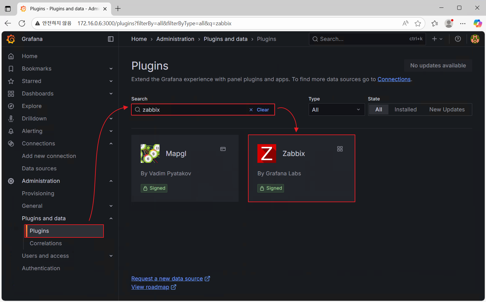 "Grafana(그라파나)"는 다양한 데이터 소스(Data Source)를 시각화할 수 있는 대시보드 도구이며, Zabbix(자빅스)와 연동하면 인프라 모니터링 데이터를 그래프로 시각화할 수 있습니다.참고링크 [Grafana] Grafana 란? Ubuntu 24.04 Grafana Install #1 [Grafana] Grafana 란? Ubuntu 24.04 Grafana Install #1"Grafana"는 데이터 분석 및 모니터링 도구로 데이터베이스나 다양한 데이터 소스와 연결되어 다양한 형태의 대시보드를 표시하여 제공할 수 있습니다. Cloud, On-Premises, IDC, IoT 등 다양한 시스템의coxfactor-tech.tistory.com1. Grafana 접속 http://:3000..