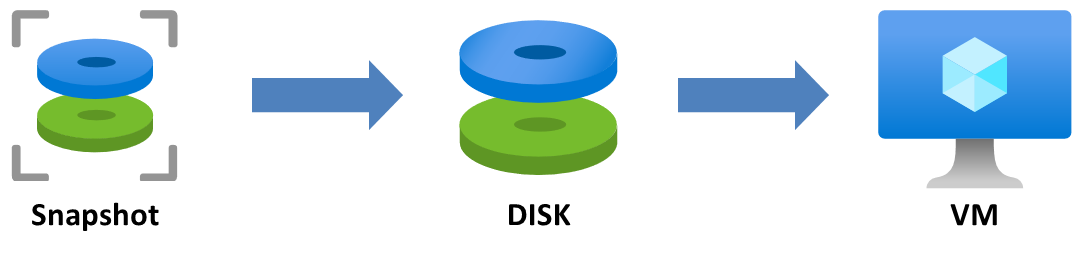 Snapshot Azure VM의 디스크 상태를 캡처하여 Snapshot을 생성합니다. Snapshot은 특정 시점의 디스크 상태를 저장한 이미지로, 백업이나 복구 목적으로 사용됩니다. 이 단계는 데이터 보존이나 환경 복제에 유용합니다. DISK 생성 생성한 Snapshot을 기반으로 새 Managed Disk를 만듭니다. 이 Disk는 Snapshot의 데이터와 구성을 그대로 복제하여 새로운 Disk로 사용할 수 있게 해줍니다. 이를 통해 동일한 데이터 상태를 가진 VM을 만들거나, 기존 VM의 상태를 복원할 수 있습니다. Azure VM 생성새로 만든 Disk를 이용해 Virtual Machine을 생성합니다. 이 과정에서 Disk를 OS Disk로 지정하면 Snapshot을 생성했던 시점의 상태로 ..