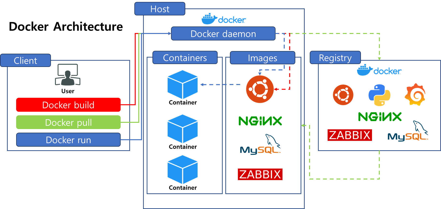 지난번에 Docker에 대해 간략히 설명드렸습니다. 이번에는 Docker 아키텍처를 기반으로 한 동작 방식을 좀 더 깊이 있게 설명하고, 이후에는 Hyper-V 환경에서 Docker 배포 가이드를 제공할 예정입니다. 기회가 된다면 Docker Swarm과 Kubernetes(K8S)도 함께 다뤄보겠습니다.[Docker] Docker 란? #1 [Docker] Docker 란? #1Docker (이미지 다운로드) 는 애플리케이션을 빠르고 쉽게 테스트하고 배포할 수 있도록 도와주는 오픈 소스 플랫폼입니다. Docker는 컨테이너(Container)라는 기술을 사용하여 애플리케이션과 필요한coxfactor-tech.tistory.com Client사용자가 Docker 명령어를 실행하는 곳입니다. ex) d..